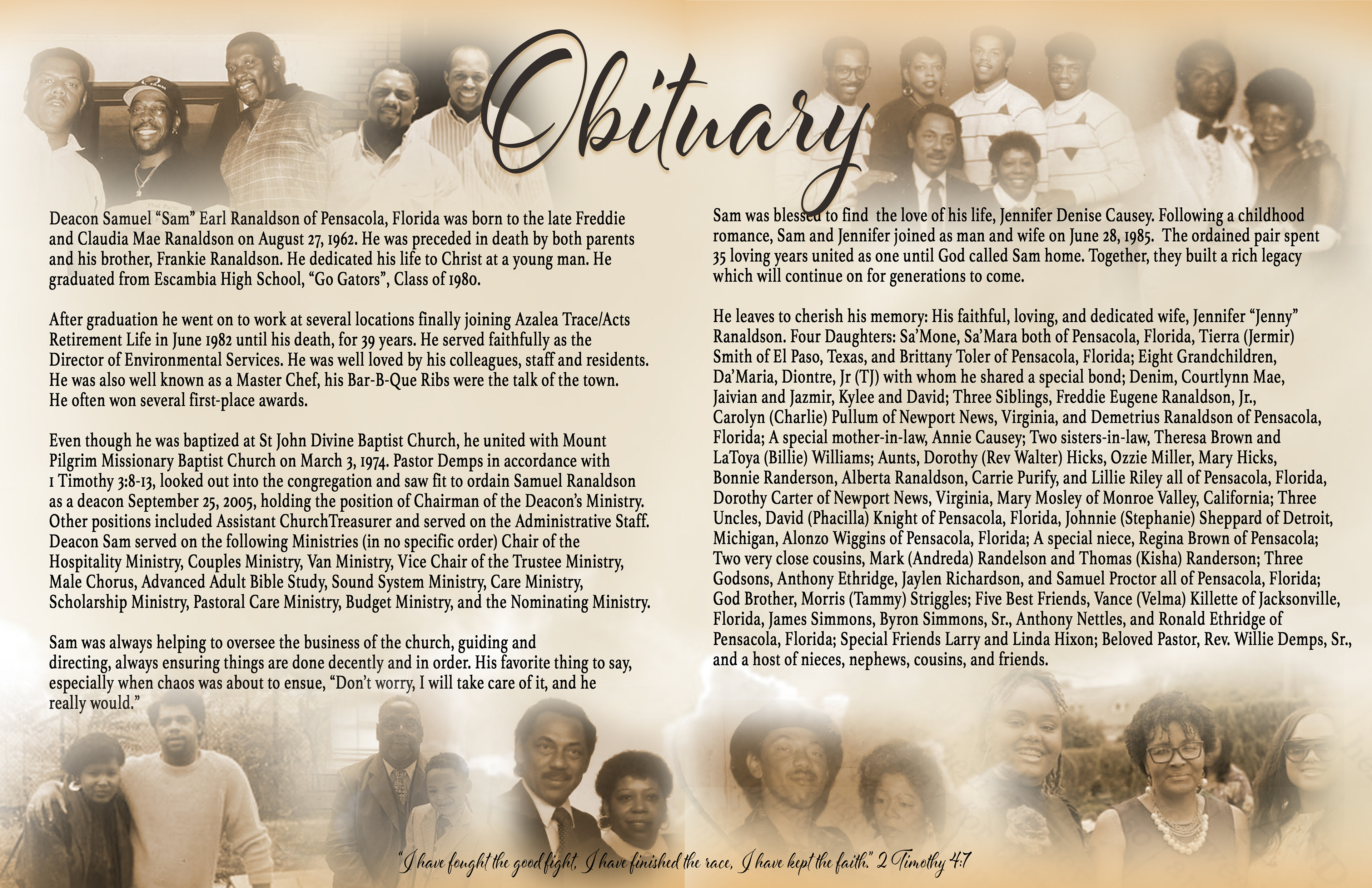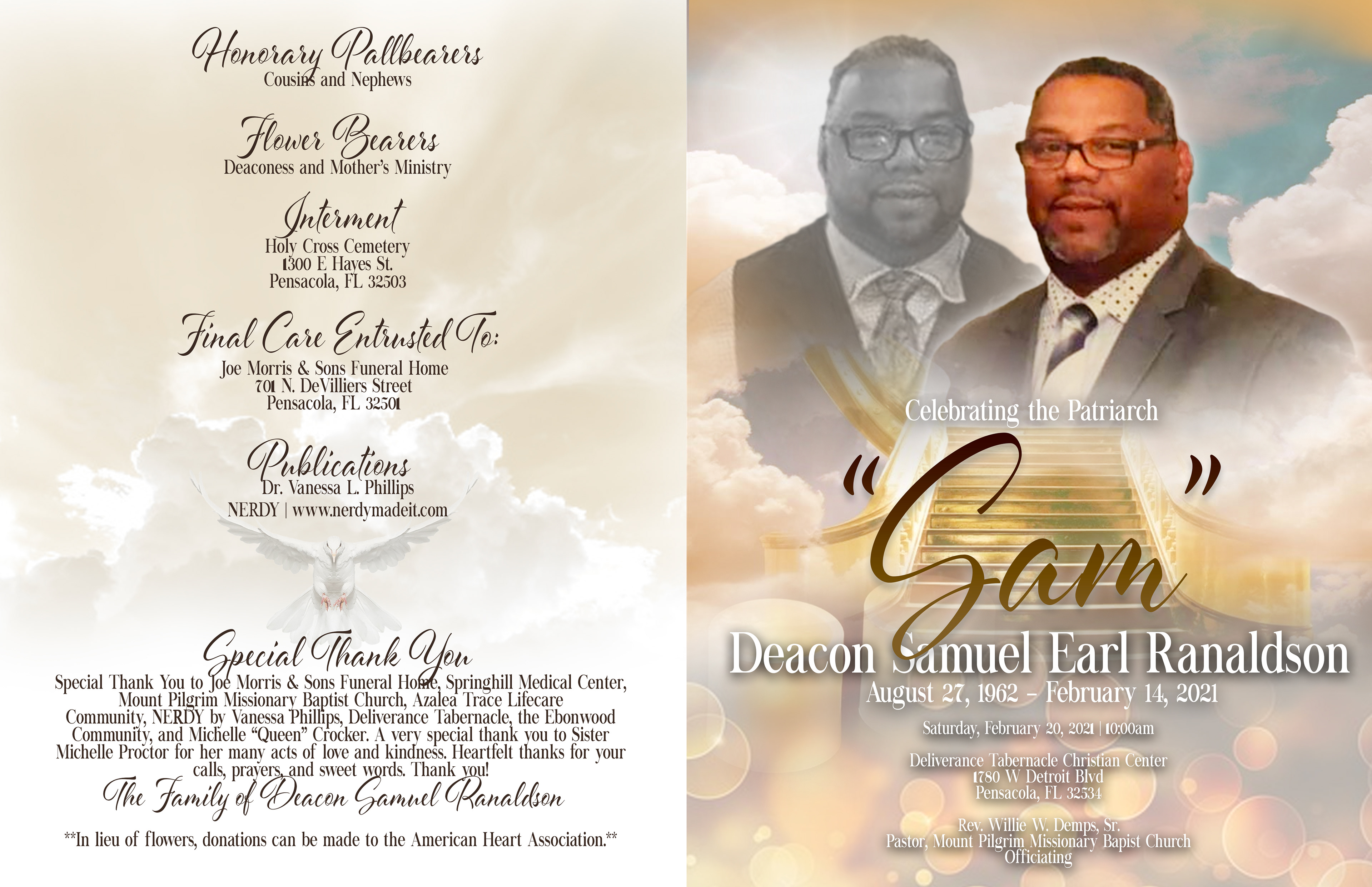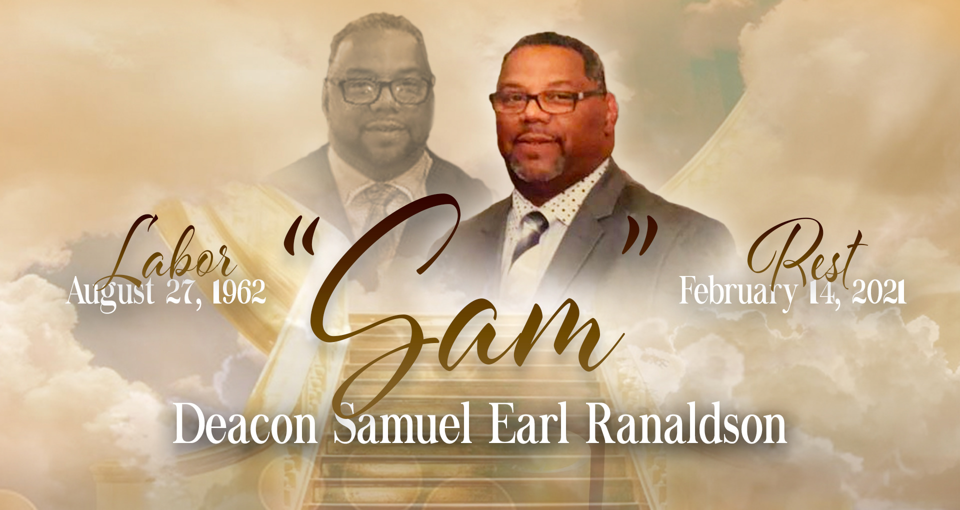 Celebrating the Ranaldson Patriarch, Deacon Samuel Earl Ranaldson August 27, 1962 - February 14, 2021 8 page funeral program & memorial screen graphics