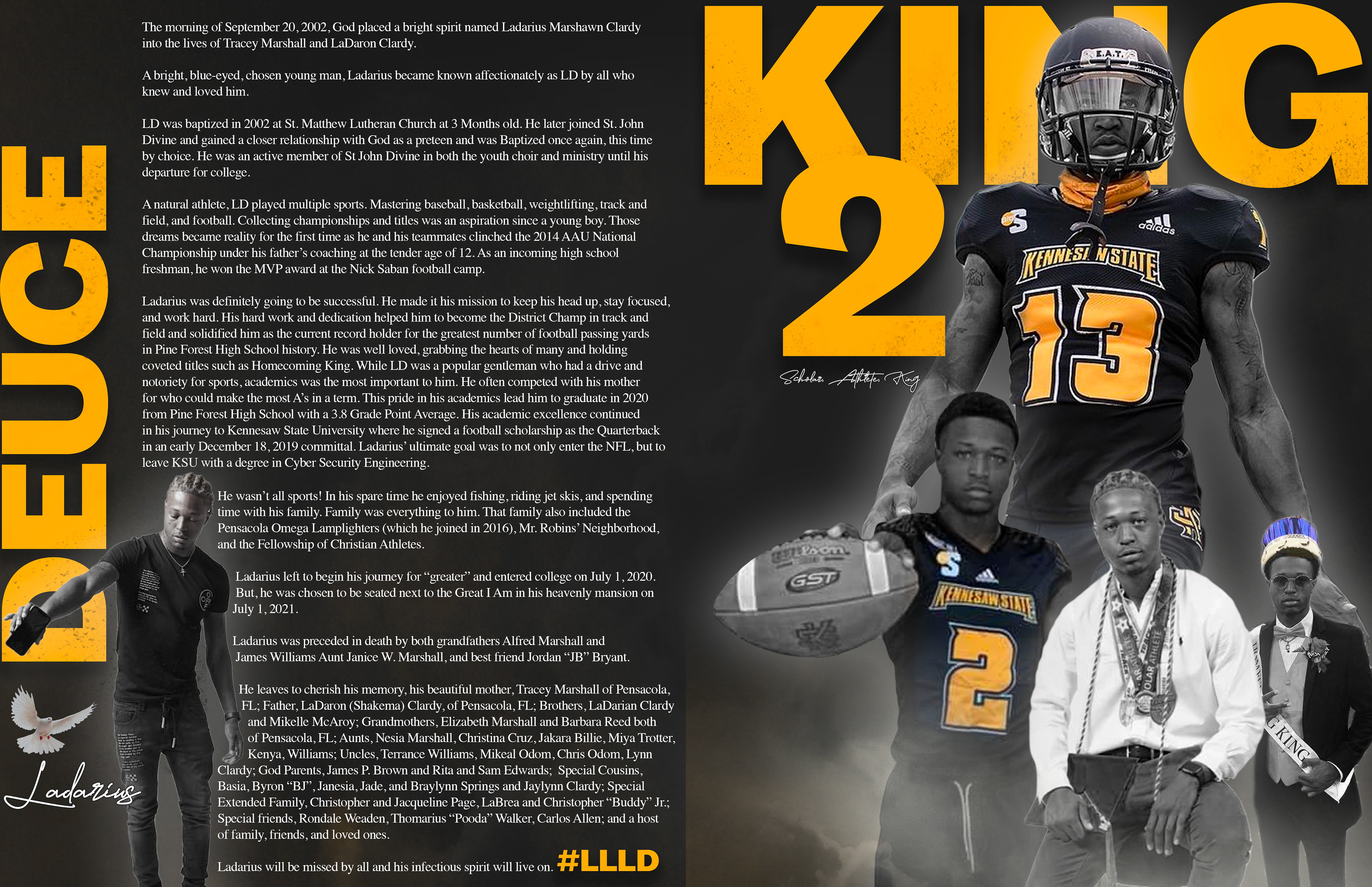Honoring the Life and Legacy of Ladarius Marshawn Clardy From Kickoff: Septmeber 20, 2002 to Touchdown: July 1, 2021