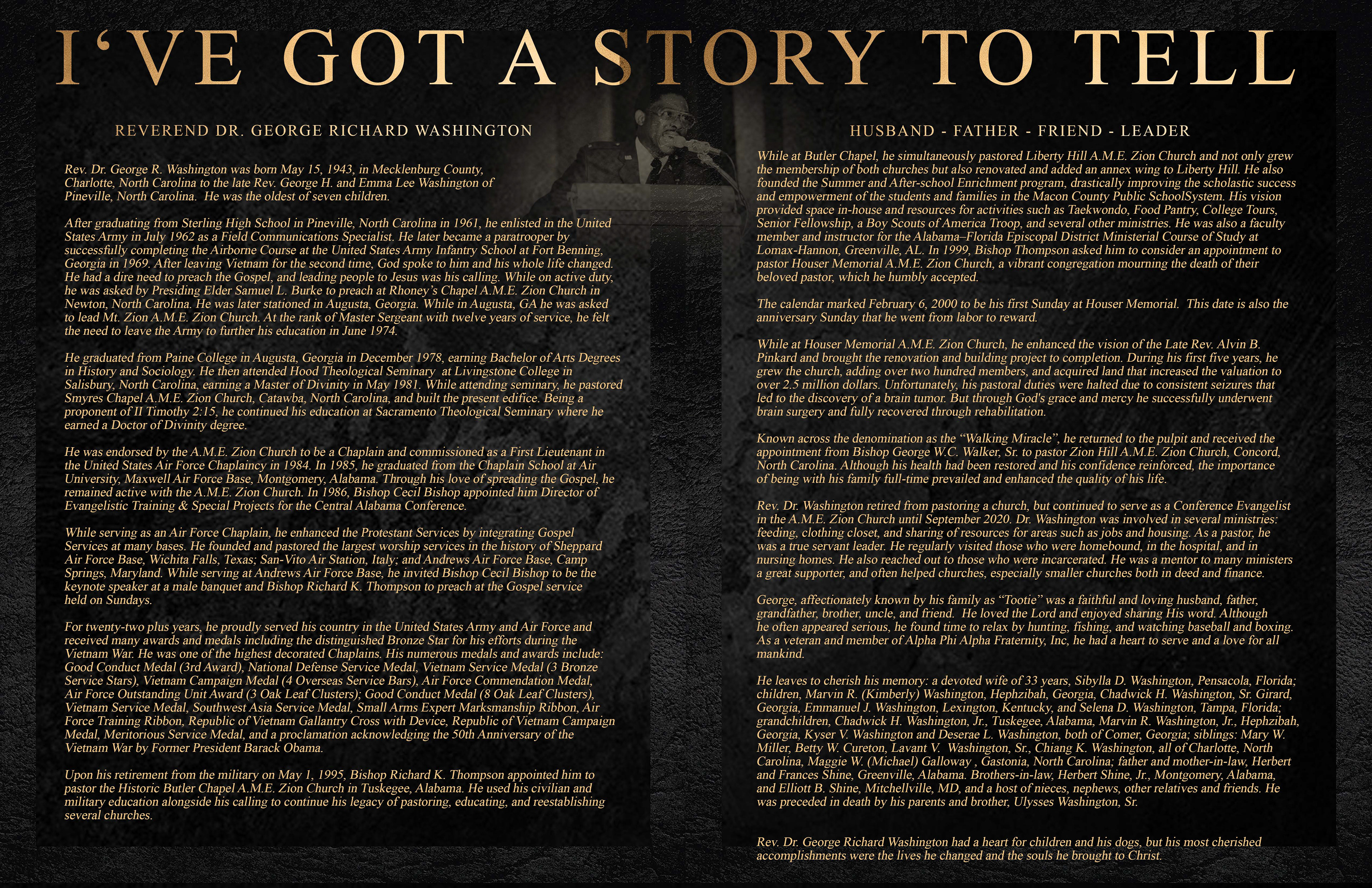 Honoring the Life and Legacy of the Reverend Dr. George R. Washington From Alpha May 15, 1943 to Omega February 6, 2022